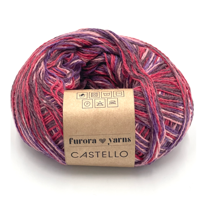 Castello to wełniana mięciutka włóczka z naszej kolekcji sezonowej z dodatkiem poliamidu. Doskonała na wyroby skarpetkowe, ale nie tylko. Wystarczy dodać cieni moherek, aby powstały bajeczne połączenia. W motku 100g znajduje sie 450m – na druty 2-3mm. Na sweter w rozmiarze M wystarczy 3-4 motki, na parę skarpetek 1 motek. Po praniu włóczka nabiera objętości i lekkości. Skład: 70% wełna, 30% poliamid.