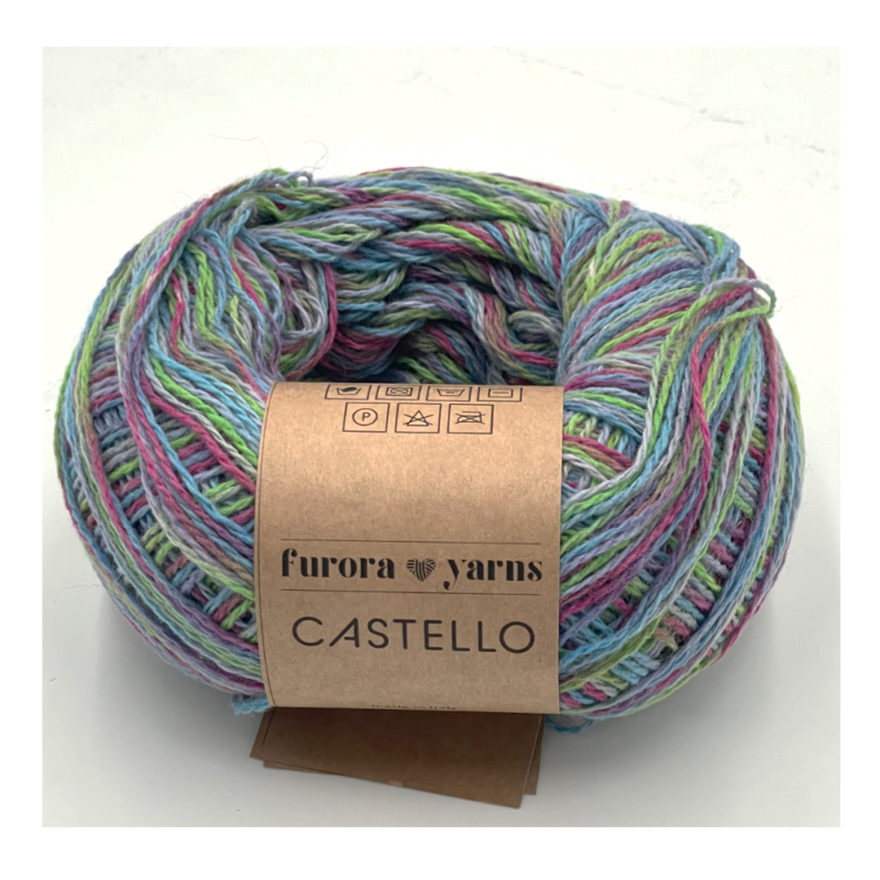 Castello to wełniana mięciutka włóczka z naszej kolekcji sezonowej z dodatkiem poliamidu. Doskonała na wyroby skarpetkowe, ale nie tylko. Wystarczy dodać cieni moherek, aby powstały bajeczne połączenia. W motku 100g znajduje sie 450m – na druty 2-3mm. Na sweter w rozmiarze M wystarczy 3-4 motki, na parę skarpetek 1 motek. Po praniu włóczka nabiera objętości i lekkości. Skład: 70% wełna, 30% poliamid.